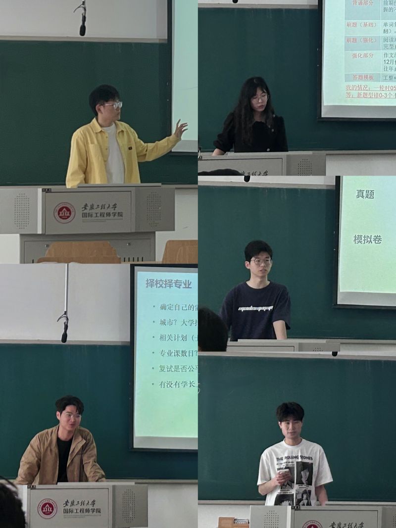 活动伊始,邱意敏介绍了学院功能型党支部的成立初衷和2025年电子科技协会、智能控制协会的考研情况。随后,成功考取中国科技大学的李昊翔、山东大学的陆正阳、北京交通大学的肖垄会、东华大学的王国云和暨南大学的熊玮5位同学依次登台,结合自身备考经历多角度分享了考研经验。他们围绕考研复习的时间分配策略、高强度学习下的心态调整方法、专业课核心知识的高效掌握技巧以及学科竞赛对考研的赋能作用等问题展开讲解,并以自身实例鼓励学弟学妹,强调坚持与规划的重要性。互动交流环节,面对与会同学在考研院校抉择、科研竞赛与备考时间的权衡、冲刺阶段复习瓶颈的突破等方面的困惑,学长学姐们耐心倾听,逐一解答。活动尾声,邱意敏对本次分享会进行总结。她鼓励同学们需立足个人实际,制定动态化学习计划,在夯实专业基础的同时培养抗压能力,将“敢吃苦、善钻研”的精神贯穿学业始终。她强调,无论选择深造或就业,青年学子都应以服务国家战略需求为己任,为中国式现代化挺膺担当贡献青春力量。参与活动的同学纷纷表示,此次分享会内容详实、针对性强,不仅为迷茫中的备考者指明了方向,更激发了他们勇于挑战、敢于胜利的豪情壮志。