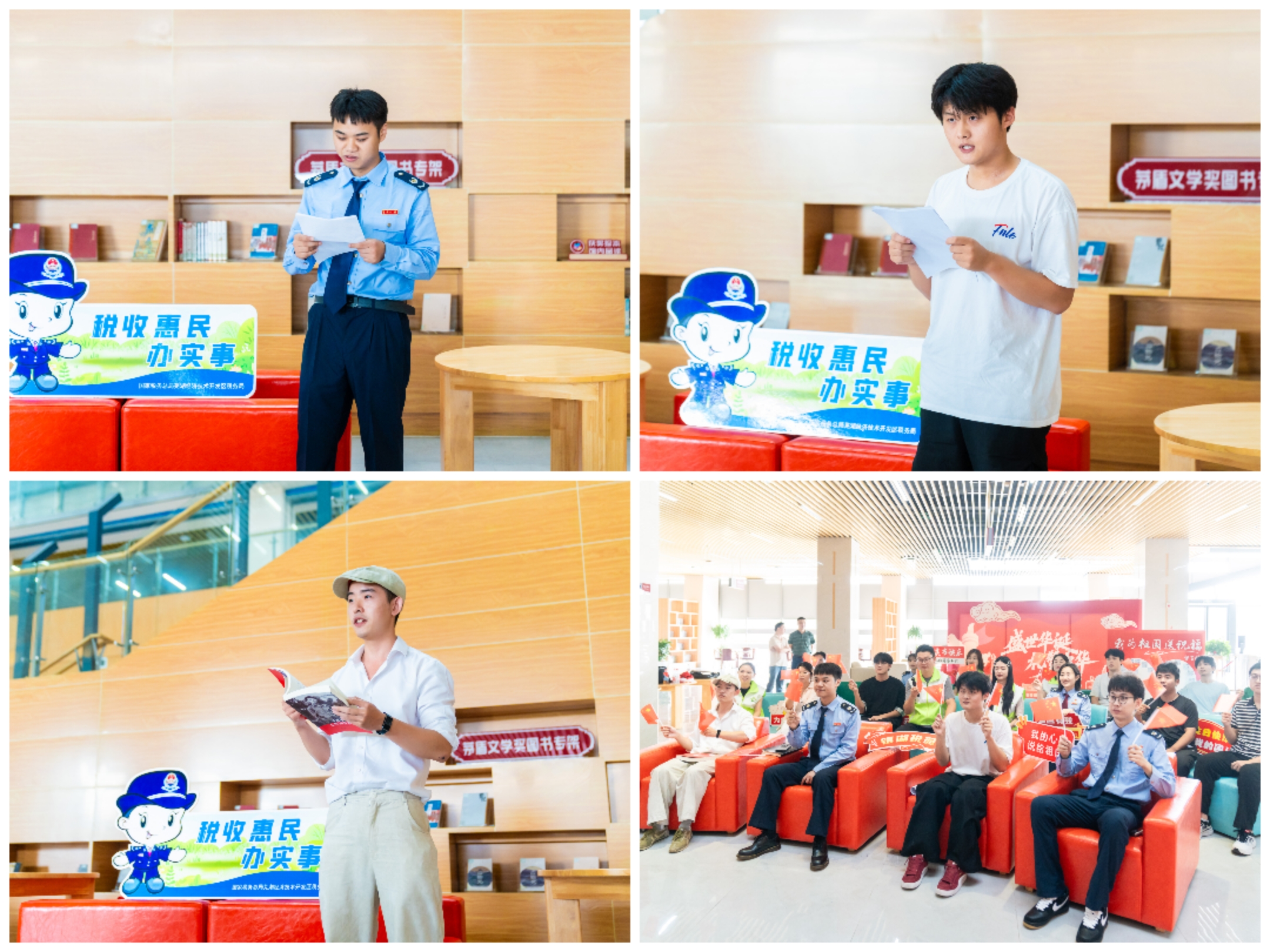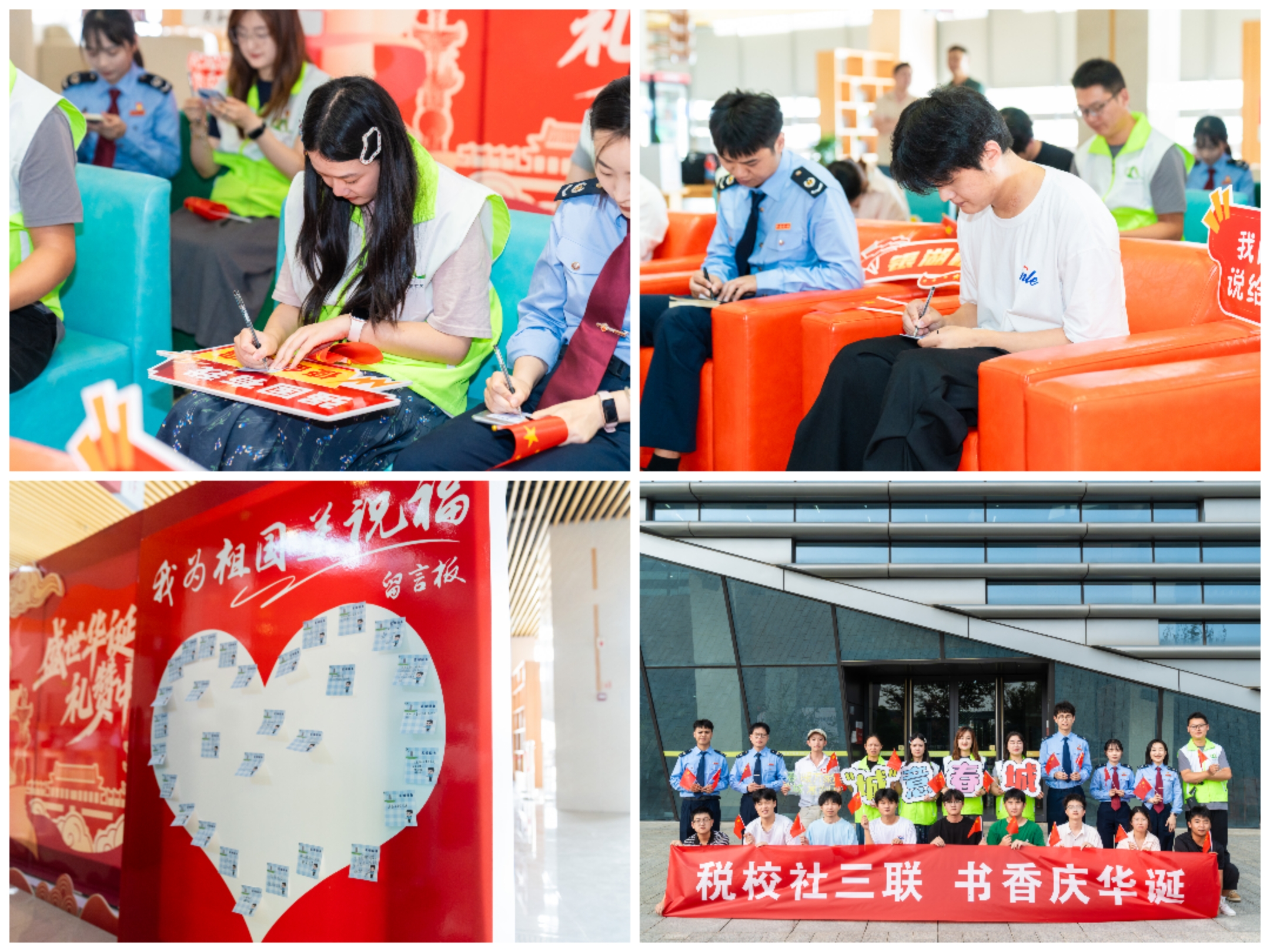 本次活动由税务局、高校、社区三方携手举办,旨在推动资源共享、深化协同育人。通过书香浸润与政策普及相结合的方式,激发师生和社区居民的爱国热情,以特别的方式为祖国庆生。