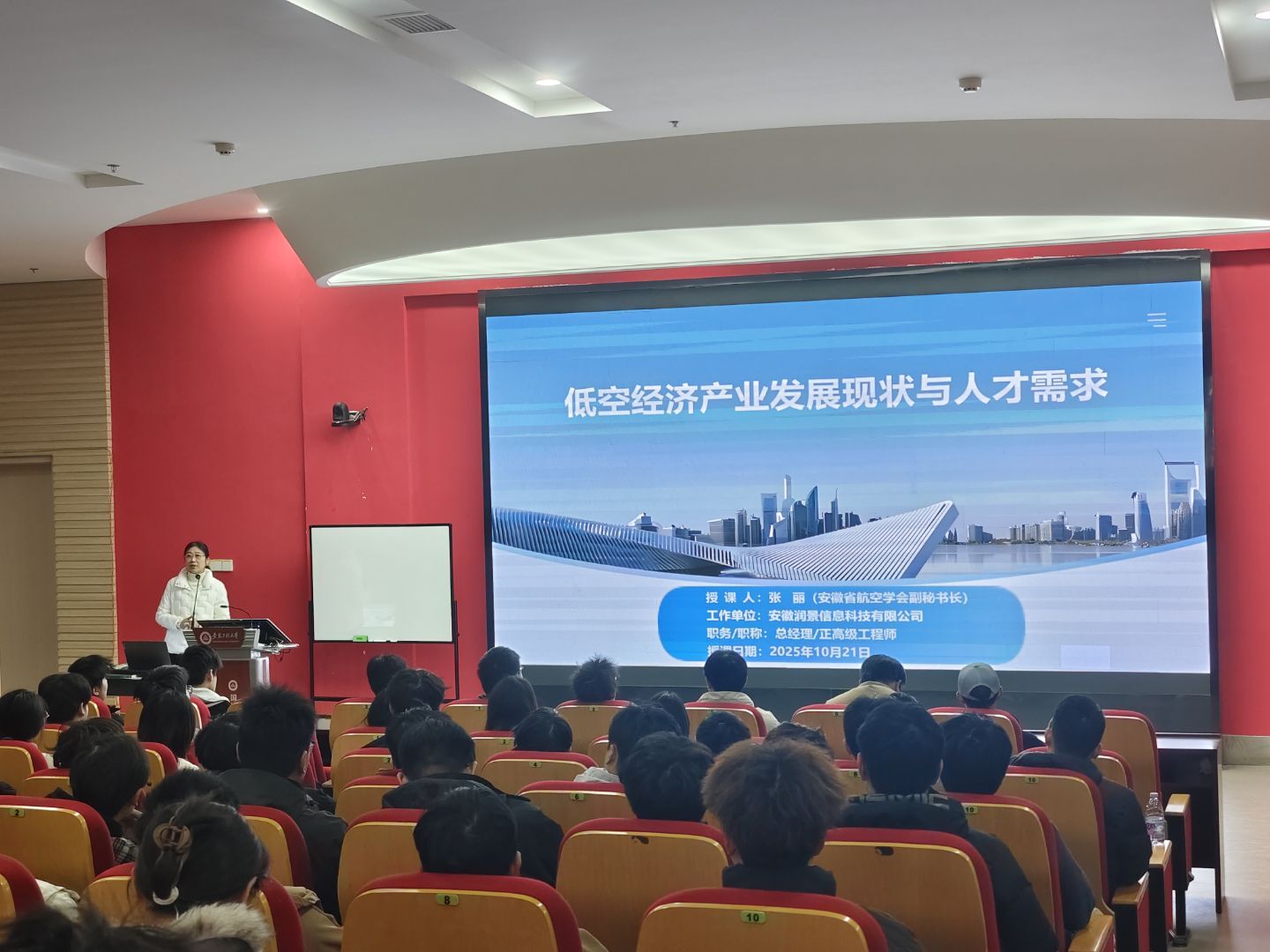 张丽校友现任安徽润景信息科技有限公司总经理,兼任国家科技部科技评审专家、安徽省航空学会副秘书长、安徽省知识产权专家库专家等多个重要职务,在装备科研项目管理、科技创新平台建设、知识产权与标准化体系建设等领域拥有超过20年的深厚积淀。讲座中,她围绕“低空经济产业发展现状与人才需求”,以个人参与各项国家级重点项目为例,生动阐释了科技工作者应具备的专业素养与创新精神。