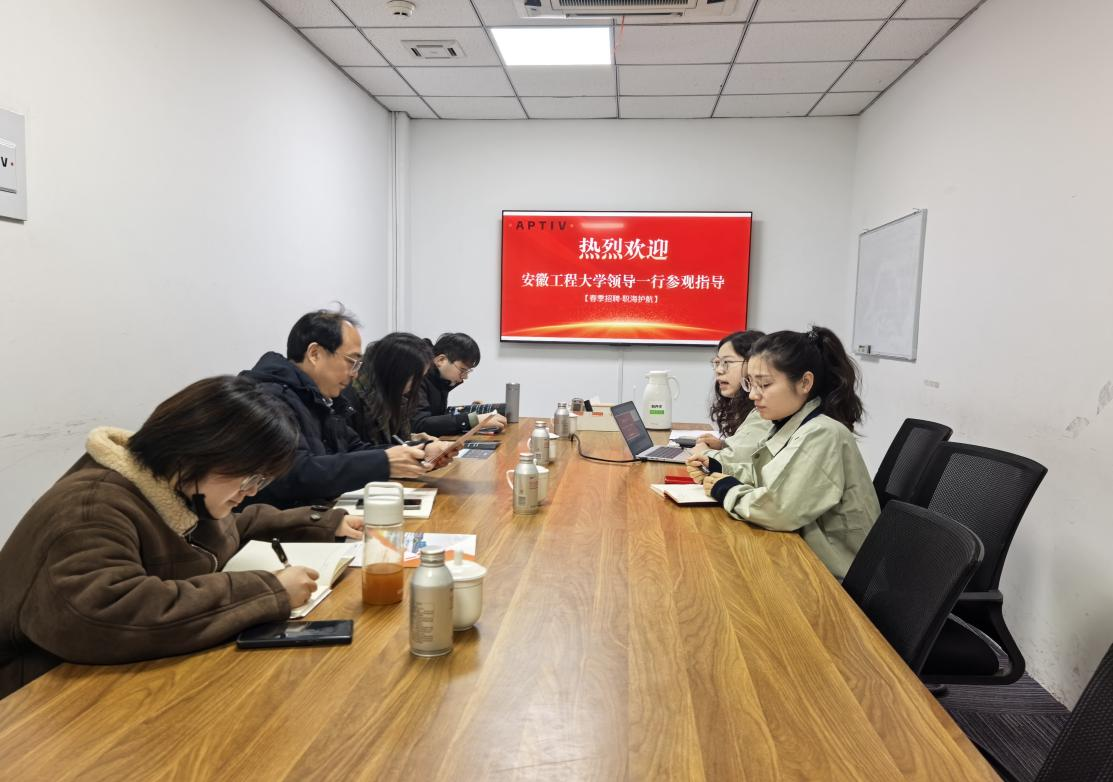 迟传德代表学院对安波福长期以来给予学院就业及人才培养工作的支持表示感谢。他重点介绍了学院近年来的学科建设成果、产教融合特色以及2026届毕业生的整体生源情况。他表示,安波福作为汽车零部件行业头部企业,与学院在专业链、人才链上高度契合。此次走访不仅是落实教育部“访企拓岗”要求的务实之举,更是精准对接企业用人需求、逆向优化学院人才培养方案的重要契机。他诚挚邀请企业近期入校举办专场招聘宣讲,将行业前沿技术与最新职场需求带入校园,打通人才输送的“最后一公里”,实现校企供需的“双向奔赴”。